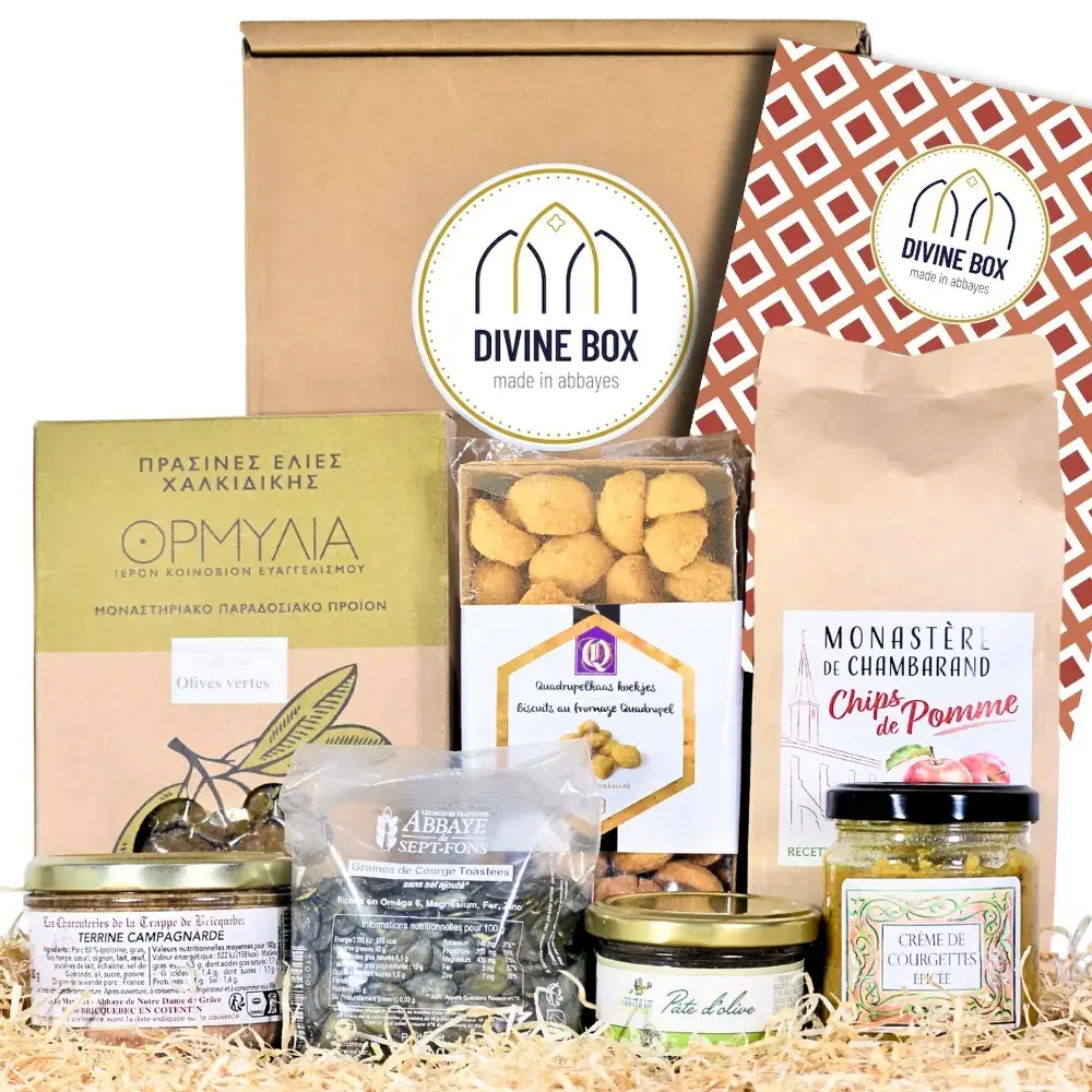 Voici une box pour « é’pâté » vos invités ! Dans cette Divine Box thème apéro, que de bons produits monastiques réconfortants :