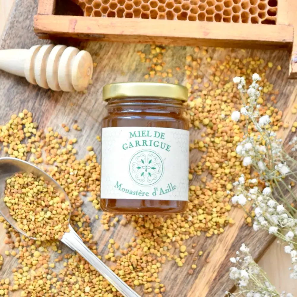 En 2008, les Chanoinesses de la Mère de Dieu d’Azille reprennent un couvent de clarisses présentes depuis le XIVe siècle situé à Azille, dans l’Aude. Les 20 soeurs qui y vivent actuellement (2025) font partie de la branche féminine de l’abbaye de Lagrasse. Elles suivent la règle de Saint Augustin et partagent leur temps entre prière et apostolat. Et pour subvenir aux besoins de la communauté, les soeurs travaillent de leurs mains : couture, fabrication de sirops et … mise en pot de miels dont le miel de Garrigue ! En effet, les Chanoinesses d’Azille ont eu l’idée de s’associer avec un ami apiculteur local pour sélectionner et mettre en pot son miel. Et parmi les miels qu’elles proposent on retrouve donc le miel de Garrigue ! Ce miel crémeux avec ses notes aromatiques vous fera voyager au pays des cigales et des accents chantants. On vous recommande de le déguster sur une tartine au petit-déjeuner, ou dans un fromage blanc. En bref, faites-en votre miel 😇
