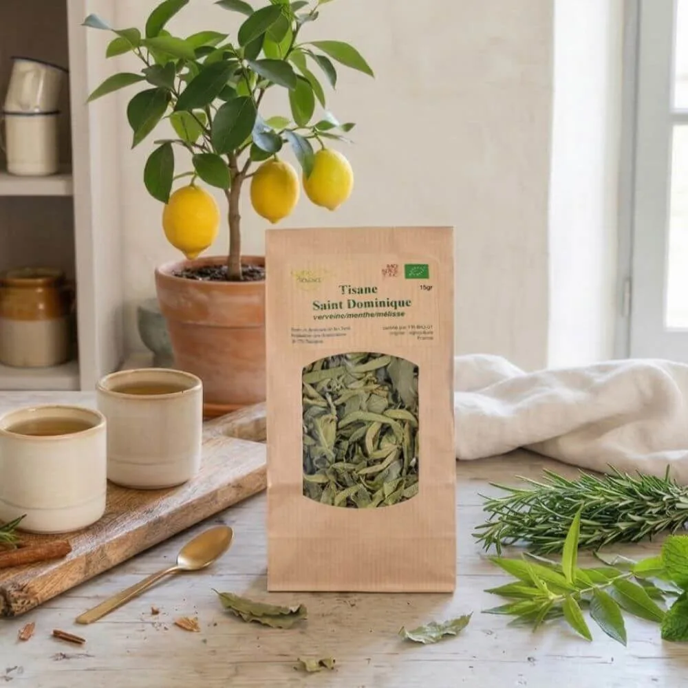 Accueil > Produits Monastiques > Boissons > Tisanes, Thés & Cafés > Tisane BIO « Saint-Dominique » (Verveine, Menthe, Mélisse) – Monastère de La Clarté Notre-Dame de Taulignan