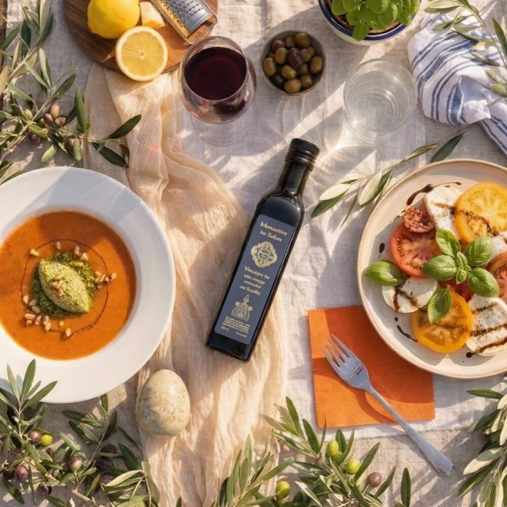 Le Vinaigre BIO au basilic, artisanal et 100% monastique est élaboré par les sœurs du Monastère de la Protection de la Mère de Dieu situé dans le Gard. Cette communauté de sœurs orthodoxes le produisent à partir de vinaigre de vin rouge issu de leur vignoble et de basilic cueilli dans leur potager, le tout 100% bio ! À la dégustation on retrouve le bon goût du vinaigre de vin fait maison avec une note délicate de basilic qui adoucit le tout et apporte une note végétale très justement dosée. Il se marie à merveille avec des salades d’été ou même dans une sauce tomate pour en relever les arômes. Avec le Vinaigre BIO au basilic du monastère de Solan, fini les assaisonnements qui tournent au vinaigre… ou presque ! 😇